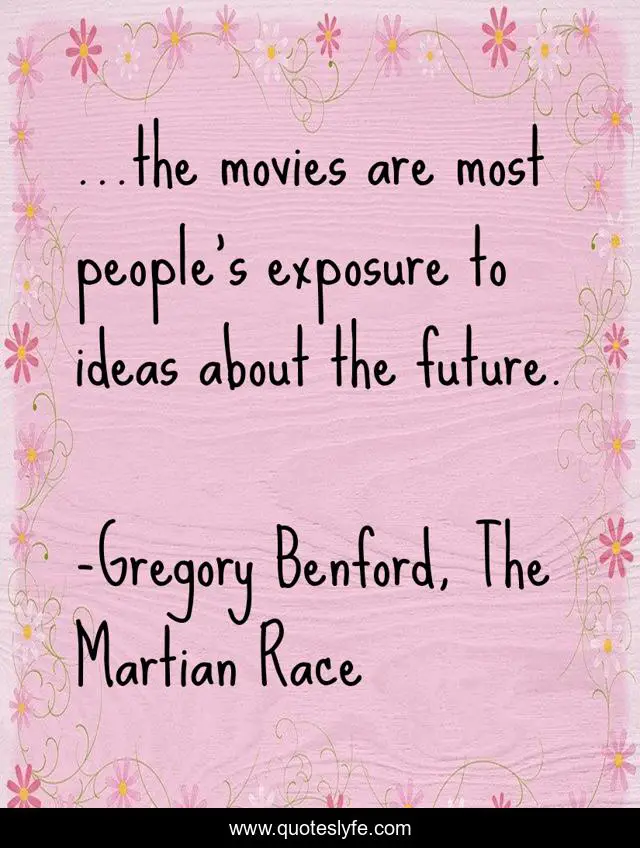 "Gregory Benford, The Martian Race Quotes." Quoteslyfe.com, 2025. Sat. 06 Dec. 2025. <https://www.quoteslyfe.com/quote/the-movies-are-most-people-s-exposure-255774>.
