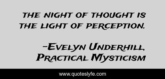 This page presents the quote "the night of thought is the light of perception.". Author of this quote is Evelyn Underhill, Practical Mysticism. This quote is about mysticism, christianity, contemplation, self-surrender,.