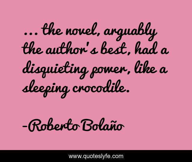 This page presents the quote "... the novel, arguably the author's best, had a disquieting power, like a sleeping crocodile.". Author of this quote is Roberto Bolaño. This quote is about irony, humor,.
