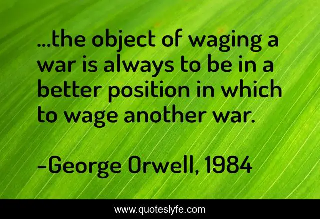 "George Orwell, 1984 Quotes." Quoteslyfe.com, 2025. Fri. 05 Dec. 2025. <https://www.quoteslyfe.com/quote/the-object-of-waging-a-war-is-52171>.
