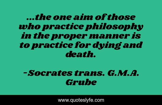 This page presents the quote "...the one aim of those who practice philosophy in the proper manner is to practice for dying and death.". Author of this quote is Socrates trans. G.M.A. Grube. This quote is about afterlife, philosophy,.