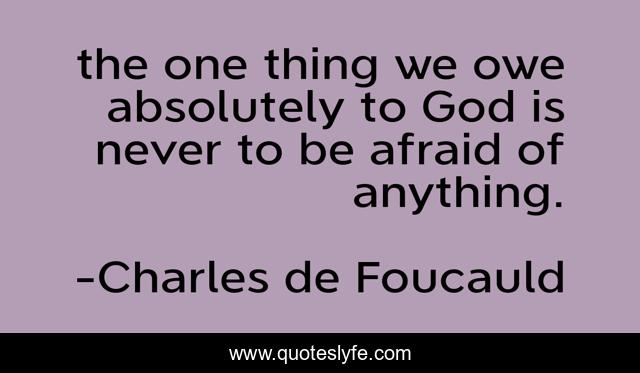 This page presents the quote "the one thing we owe absolutely to God is never to be afraid of anything.". Author of this quote is Charles de Foucauld. .
