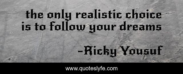 This page presents the quote "the only realistic choice is to follow your dreams". Author of this quote is Ricky Yousuf. This quote is about life, goals, dreams, choices,.