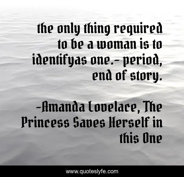 This page presents the quote "the only thing required to be a woman is to identifyas one.- period, end of story.". Author of this quote is Amanda Lovelace, The Princess Saves Herself in this One. This quote is about amanda-lovelace, feminism, poetry,.