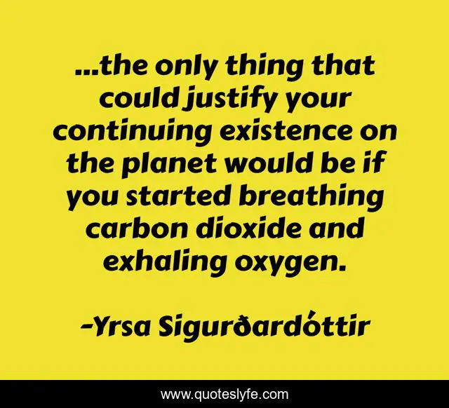 This page presents the quote "...the only thing that could justify your continuing existence on the planet would be if you started breathing carbon dioxide and exhaling oxygen.". Author of this quote is Yrsa Sigurðardóttir. This quote is about fun, exasperation, humor, respectful-anger, insults,.