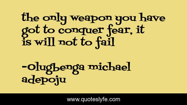 This page presents the quote "the only weapon you have got to conquer fear, it is will not to fail". Author of this quote is Olugbenga michael adepoju. .