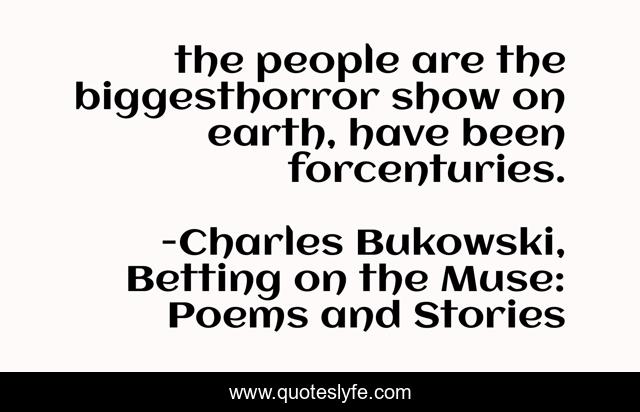 "Charles Bukowski, Betting on the Muse: Poems and Stories Quotes." Quoteslyfe.com, 2025. Tue. 09 Dec. 2025. <https://www.quoteslyfe.com/quote/the-people-are-the-biggesthorror-show-on-156467>.