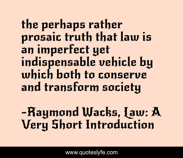 This page presents the quote "the perhaps rather prosaic truth that law is an imperfect yet indispensable vehicle by which both to conserve and transform society". Author of this quote is Raymond Wacks, Law: A Very Short Introduction. .
