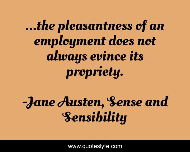 This page presents the quote "...the pleasantness of an employment does not always evince its propriety.". Author of this quote is Jane Austen, Sense and Sensibility. This quote is about enjoyment, manners, behaviour, propriety, attitude, behavior, employment,.