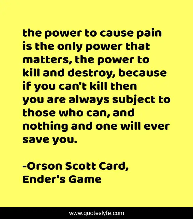 "Orson Scott Card, Ender's Game Quotes." Quoteslyfe.com, 2025. Sat. 06 Dec. 2025. <https://www.quoteslyfe.com/quote/the-power-to-cause-pain-is-the-104784>.