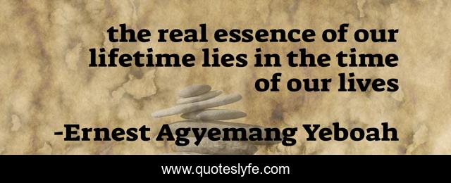 "Ernest Agyemang Yeboah Quotes." Quoteslyfe.com, 2025. Mon. 08 Dec. 2025. <https://www.quoteslyfe.com/quote/the-real-essence-of-our-lifetime-lies-224210>.