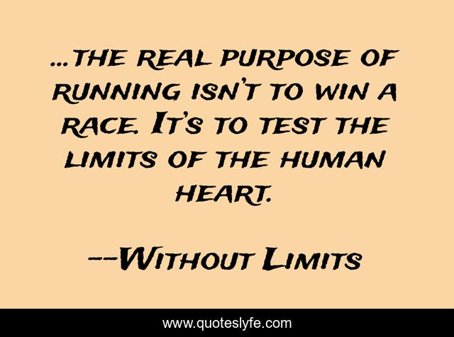 This page presents the quote "...the real purpose of running isn’t to win a race. It’s to test the limits of the human heart.". Author of this quote is -Without Limits. .