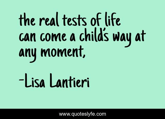 This page presents the quote "the real tests of life can come a child’s way at any moment, ". Author of this quote is Lisa Lantieri. This quote is about parenthood, discipleship,.