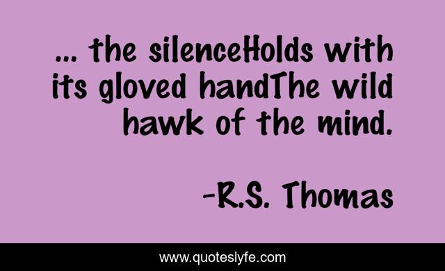 This page presents the quote "... the silenceHolds with its gloved handThe wild hawk of the mind.". Author of this quote is R.S. Thomas. This quote is about poetry, silence,.