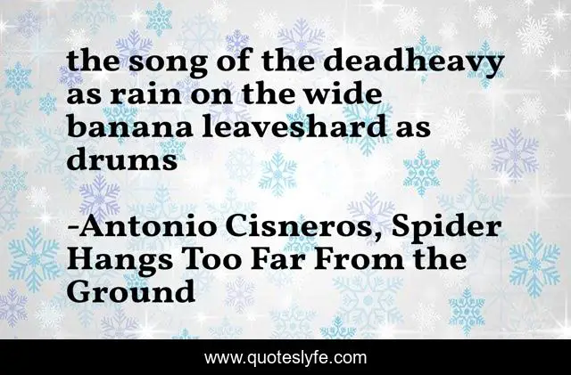 This page presents the quote "the song of the deadheavy as rain on the wide banana leaveshard as drums". Author of this quote is Antonio Cisneros, Spider Hangs Too Far From the Ground. This quote is about poetry-excerpt, quote, death, dead, quotes,.