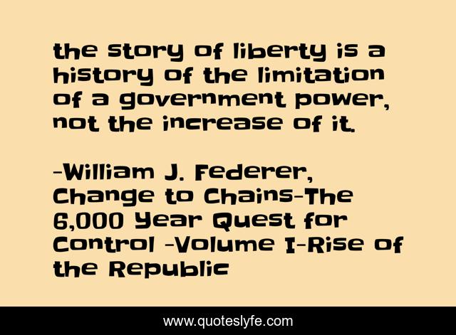"William J. Federer, Change to Chains-The 6,000 Year Quest for Control -Volume I-Rise of the Republic Quotes." Quoteslyfe.com, 2025. Sat. 06 Dec. 2025. <https://www.quoteslyfe.com/quote/the-story-of-liberty-is-a-history-70365>.