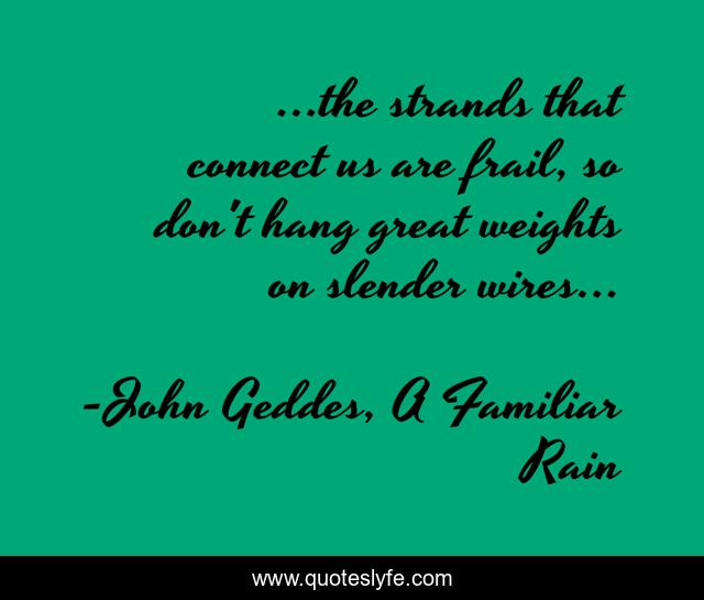 "John Geddes, A Familiar Rain Quotes." Quoteslyfe.com, 2025. Fri. 05 Dec. 2025. <https://www.quoteslyfe.com/quote/the-strands-that-connect-us-are-frail-250254>.