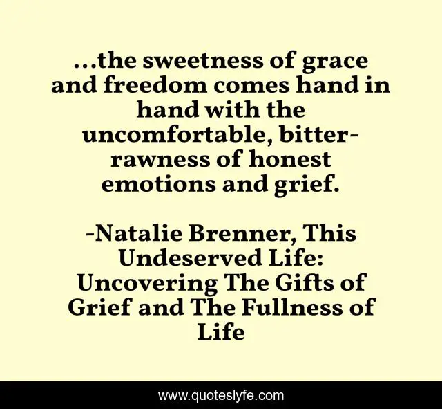 "Natalie Brenner, This Undeserved Life: Uncovering The Gifts of Grief and The Fullness of Life Quotes." Quoteslyfe.com, 2025. Sat. 06 Dec. 2025. <https://www.quoteslyfe.com/quote/the-sweetness-of-grace-and-freedom-comes-54750>.