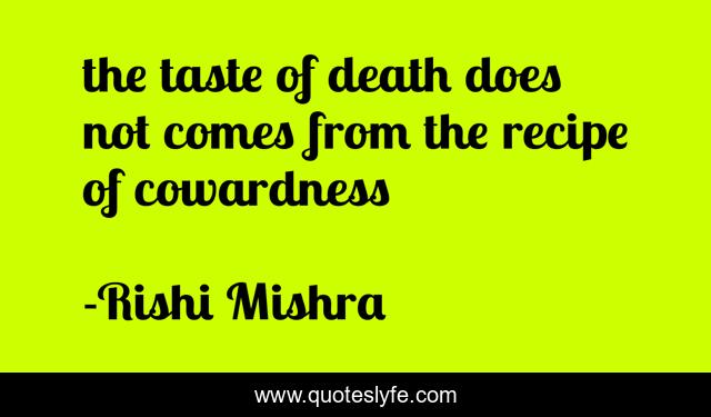 This page presents the quote "the taste of death does not comes from the recipe of cowardness". Author of this quote is Rishi Mishra. This quote is about idealism, revolutionary, courage, inspirational, enthusiasm,.