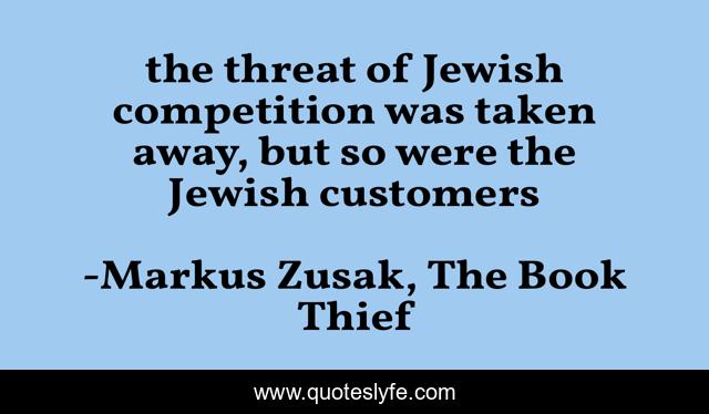 This page presents the quote "the threat of Jewish competition was taken away, but so were the Jewish customers". Author of this quote is Markus Zusak, The Book Thief. .