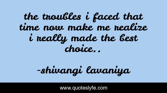 This page presents the quote "the troubles i faced that time now make me realize i really made the best choice..". Author of this quote is shivangi lavaniya. This quote is about choice, time,.