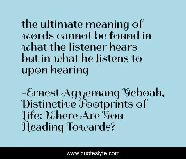 "Ernest Agyemang Yeboah, Distinctive Footprints of Life: Where Are You Heading Towards? Quotes." Quoteslyfe.com, 2025. Sat. 06 Dec. 2025. <https://www.quoteslyfe.com/quote/the-ultimate-meaning-of-words-cannot-be-99023>.