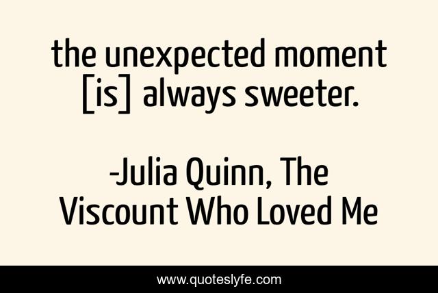 "Julia Quinn, The Viscount Who Loved Me Quotes." Quoteslyfe.com, 2025. Sat. 06 Dec. 2025. <https://www.quoteslyfe.com/quote/the-unexpected-moment-is-always-sweeter-18640>.