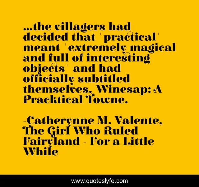 "Catherynne M. Valente, The Girl Who Ruled Fairyland - For a Little While Quotes." Quoteslyfe.com, 2025. Mon. 08 Dec. 2025. <https://www.quoteslyfe.com/quote/the-villagers-had-decided-that-practical-meant-166789>.