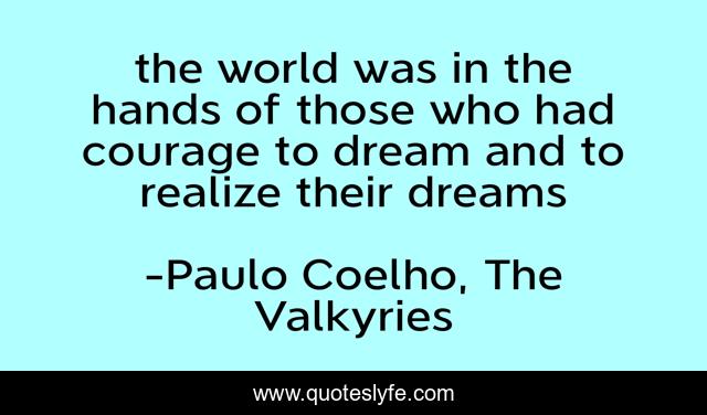 This page presents the quote "the world was in the hands of those who had courage to dream and to realize their dreams". Author of this quote is Paulo Coelho, The Valkyries. This quote is about courage, dream,.
