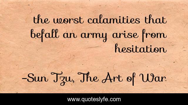 This page presents the quote "the worst calamities that befall an army arise from hesitation". Author of this quote is Sun Tzu, The Art of War. This quote is about war, business, strategy,.