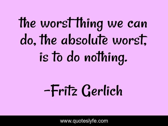 This page presents the quote "the worst thing we can do, the absolute worst, is to do nothing.". Author of this quote is Fritz Gerlich. .