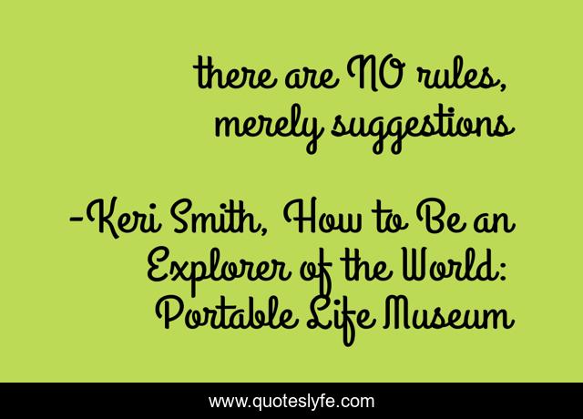 "Keri Smith, How to Be an Explorer of the World: Portable Life Museum Quotes." Quoteslyfe.com, 2025. Fri. 05 Dec. 2025. <https://www.quoteslyfe.com/quote/there-are-NO-rules-merely-suggestions-254342>.