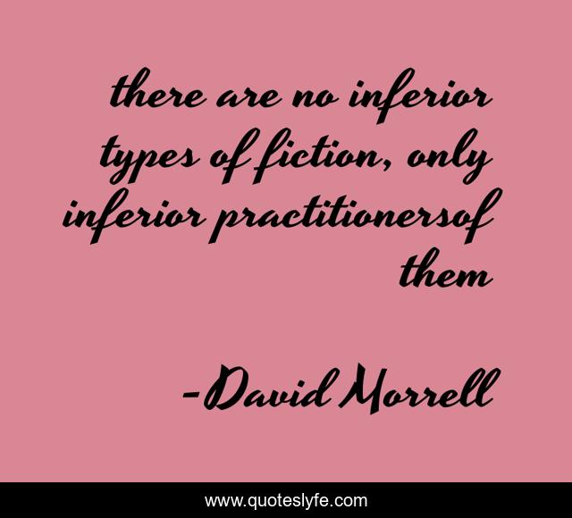 This page presents the quote "there are no inferior types of fiction, only inferior practitionersof them". Author of this quote is David Morrell. This quote is about literature, writing,.