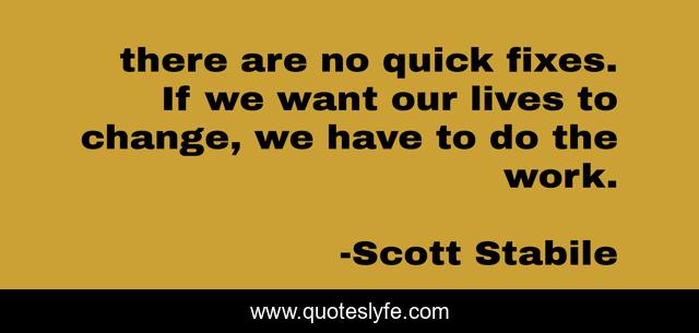 This page presents the quote "there are no quick fixes. If we want our lives to change, we have to do the work.". Author of this quote is Scott Stabile. This quote is about quick-fix, love, life, motivation, affection, change,.