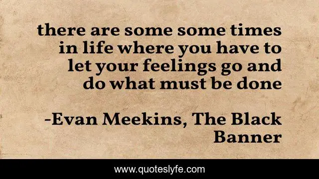 This page presents the quote "there are some some times in life where you have to let your feelings go and do what must be done". Author of this quote is Evan Meekins, The Black Banner. This quote is about duty, emotion, fiction, fantasy, young-adult-fiction, fantasy-fiction, feelings, young-adult, young-adult-fantasy,.