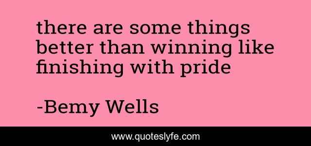 This page presents the quote "there are some things better than winning like finishing with pride". Author of this quote is Bemy Wells. This quote is about life, life-lessons,.