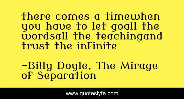 This page presents the quote "there comes a timewhen you have to let goall the wordsall the teachingand trust the infinite". Author of this quote is Billy Doyle, The Mirage of Separation. This quote is about faith, trust,.
