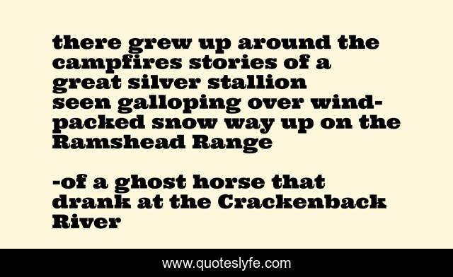 This page presents the quote "there grew up around the campfires stories of a great silver stallion seen galloping over wind-packed snow way up on the Ramshead Range". Author of this quote is of a ghost horse that drank at the Crackenback River. .
