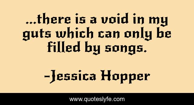 This page presents the quote "...there is a void in my guts which can only be filled by songs.". Author of this quote is Jessica Hopper. This quote is about music, rock, music-criticism, women,.