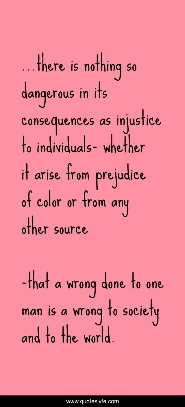 ...there is nothing so dangerous in its consequences as injustice to individuals- whether it arise from prejudice of color or from any other source