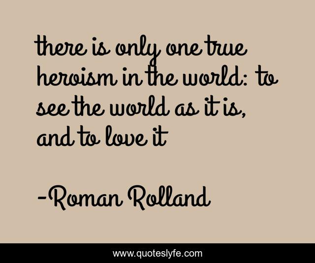 This page presents the quote "there is only one true heroism in the world: to see the world as it is, and to love it". Author of this quote is Roman Rolland. This quote is about world, heroism, love, affection,.