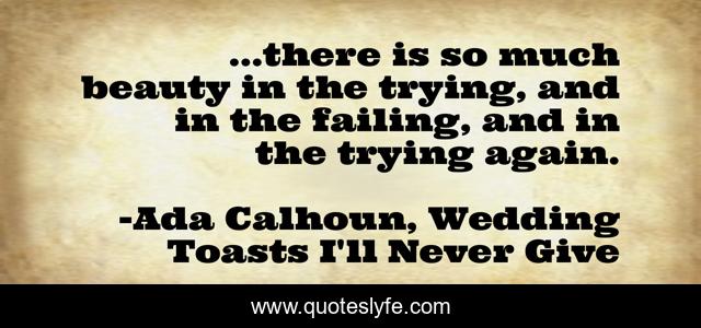 This page presents the quote "...there is so much beauty in the trying, and in the failing, and in the trying again.". Author of this quote is Ada Calhoun, Wedding Toasts I'll Never Give. This quote is about trying, marriage, failing,.