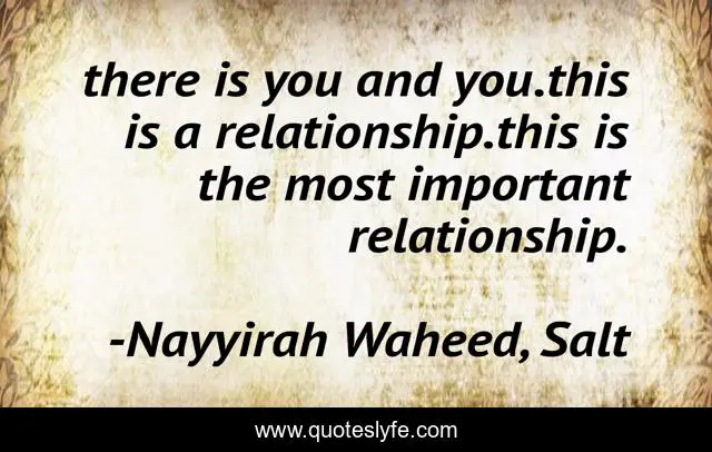 This page presents the quote "there is you and you.this is a relationship.this is the most important relationship.". Author of this quote is Nayyirah Waheed, Salt. This quote is about poem, self-love,.
