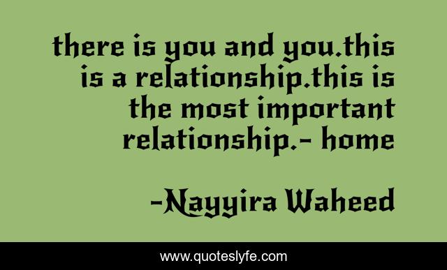 This page presents the quote "there is you and you.this is a relationship.this is the most important relationship.- home". Author of this quote is Nayyira Waheed. .