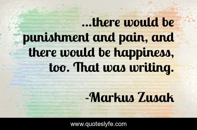 This page presents the quote "...there would be punishment and pain, and there would be happiness, too. That was writing.". Author of this quote is Markus Zusak. .