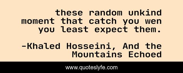 This page presents the quote "these random unkind moment that catch you wen you least expect them.". Author of this quote is Khaled Hosseini, And the Mountains Echoed. .