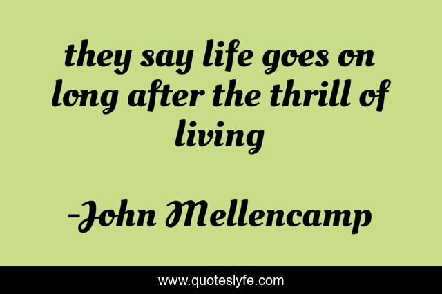 This page presents the quote "they say life goes on long after the thrill of living". Author of this quote is John Mellencamp. This quote is about life, live, life-lessons,.