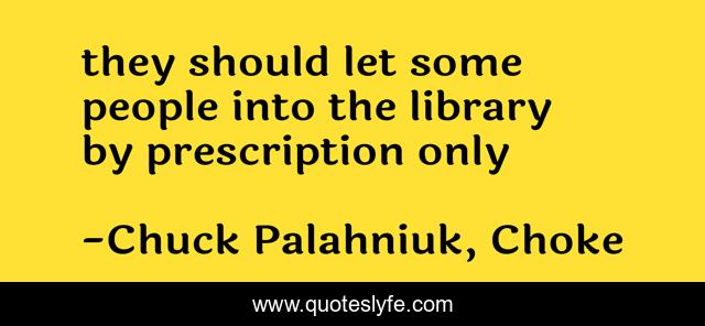 This page presents the quote "they should let some people into the library by prescription only". Author of this quote is Chuck Palahniuk, Choke. This quote is about reading, humor, library,.