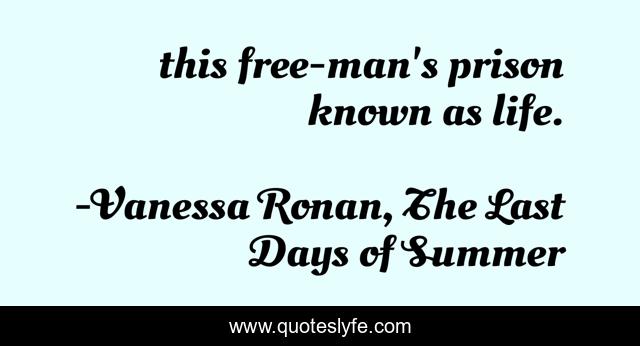This page presents the quote "this free-man's prison known as life.". Author of this quote is Vanessa Ronan, The Last Days of Summer. This quote is about freedom, life, incarnation, free, prison,.