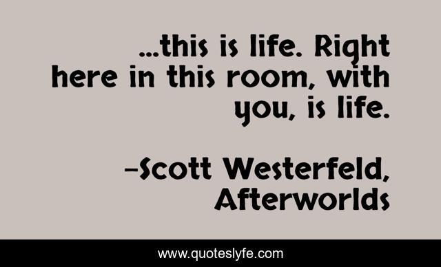 This page presents the quote "...this is life. Right here in this room, with you, is life.". Author of this quote is Scott Westerfeld, Afterworlds. This quote is about love, relationship, affection,.